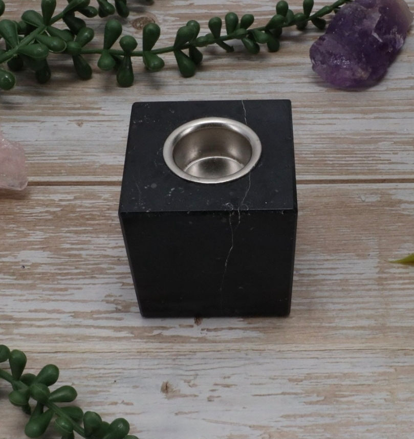 Black Tourmaline Cube for Taper Candle